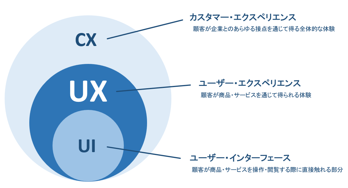 UXを理解するためには、UIやCXとの違いや関係性を把握しておくことが必要です。